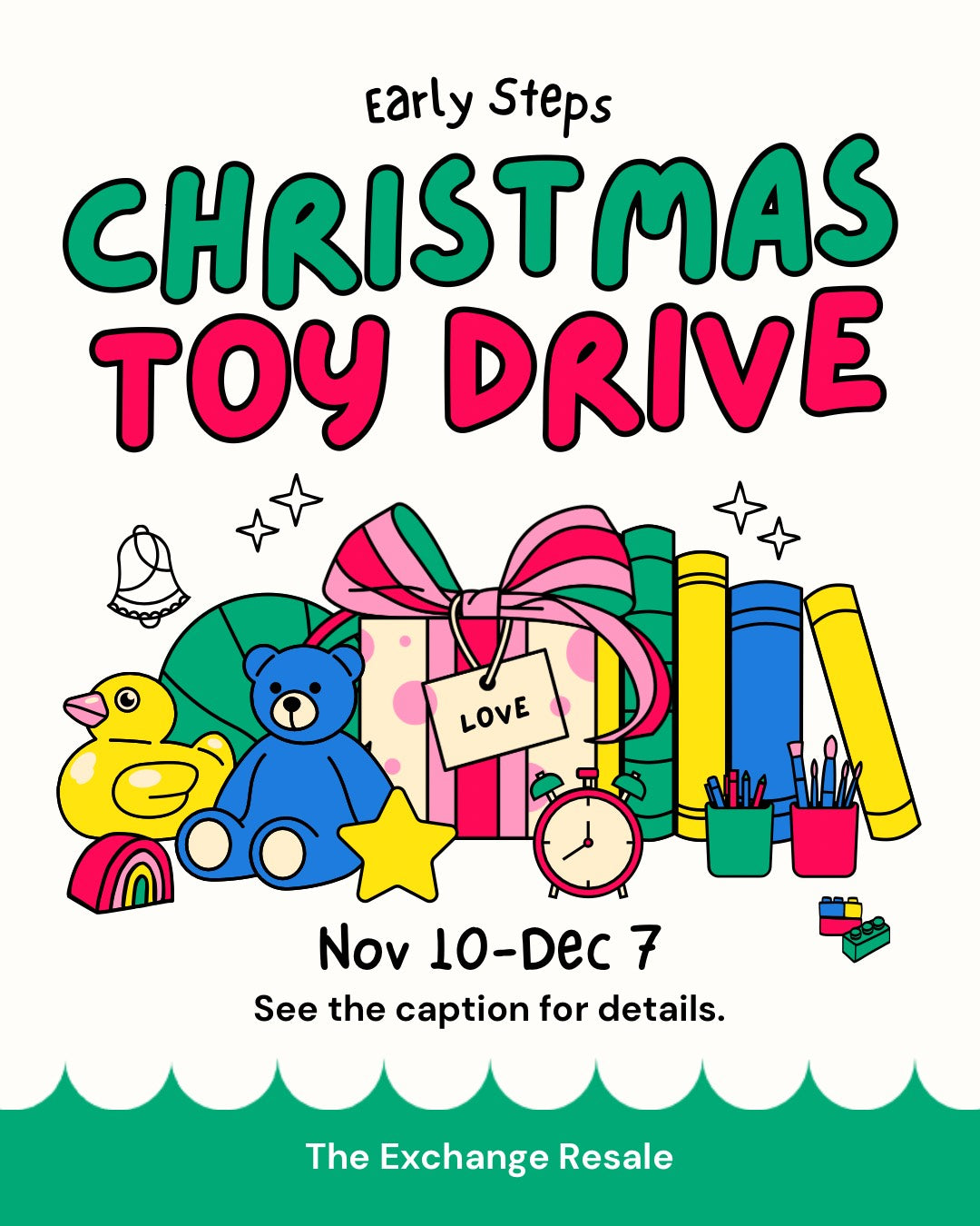 We are partnering with Space Coast Early Steps to host a donation box at The Exchange Resale! We need your help. Now through December 7th, we’re spreading holiday cheer.